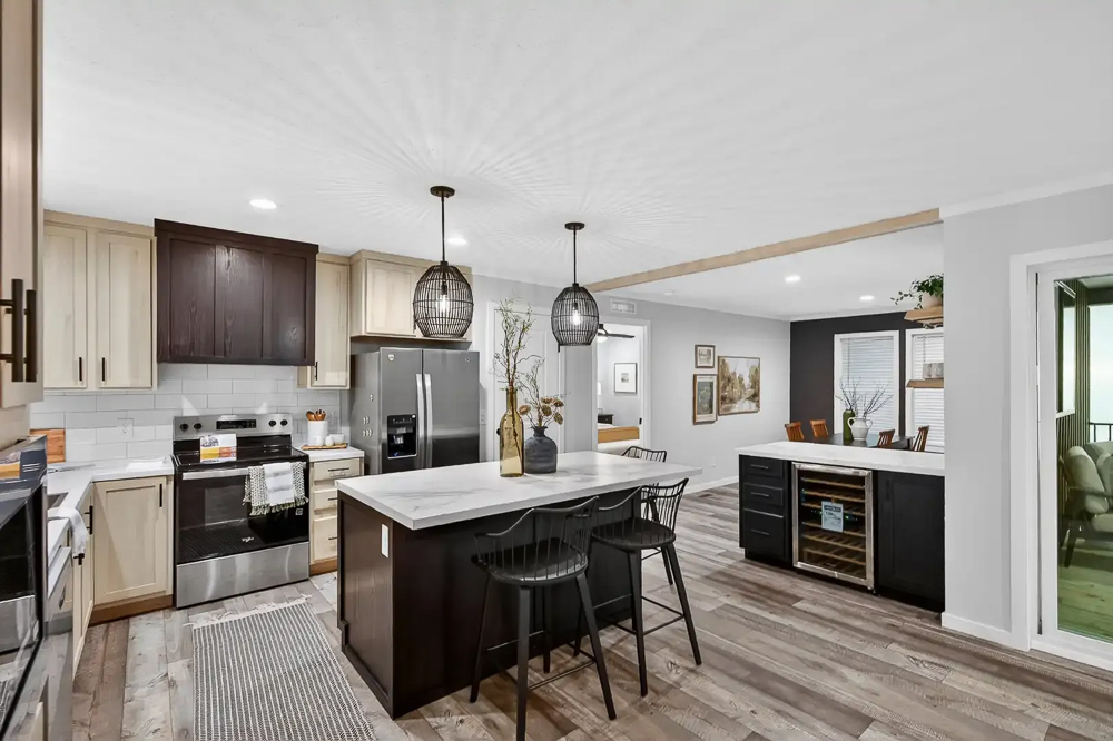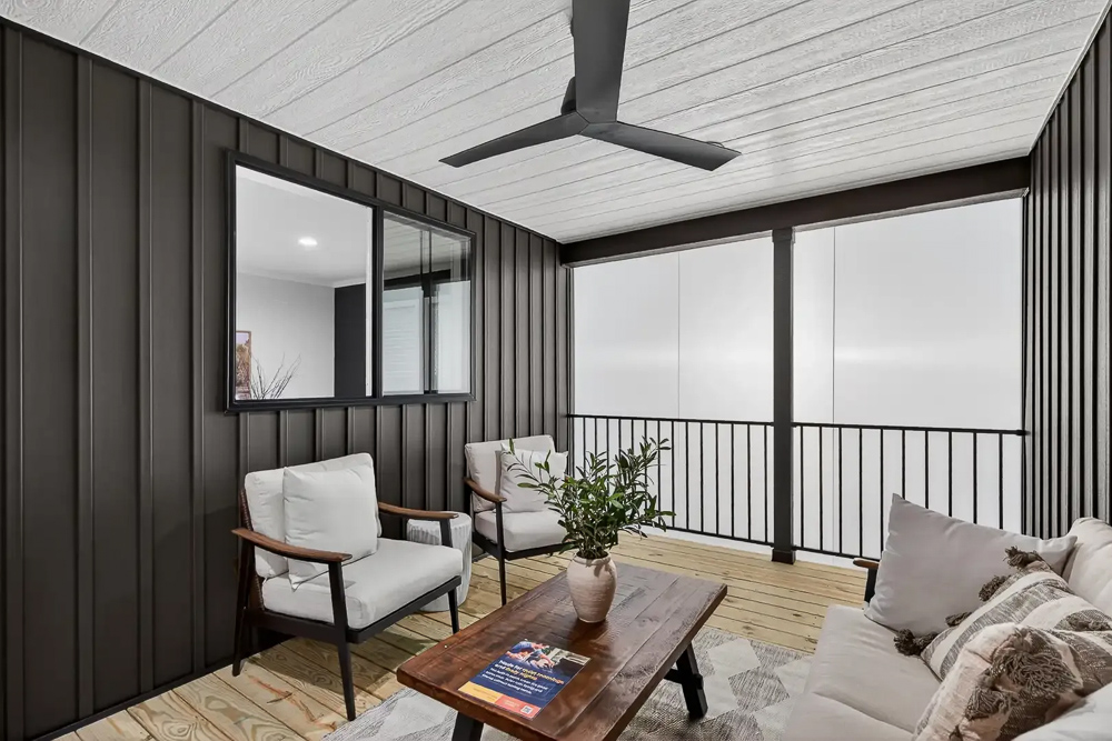 Defined by clean rooflines, an Alpine dormer and a standout two-tone exterior, its curb appeal is both confident and inviting. Inside, painted drywall, rich black accents, select features and a built-in entertainment center create a polished, modern ambiance. An integrated porch (or optional sunroom) invites unhurried mornings and social open-air evenings, while energy-efficient design ensures lasting comfort and value.