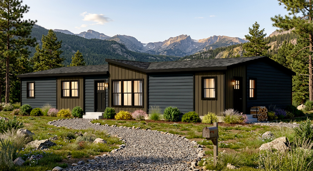 - Black exterior trim (black fascia aluminum and black soffit vinyl)