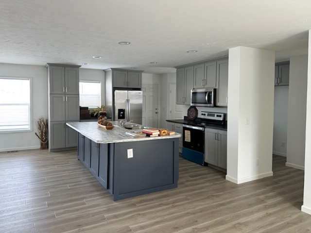 This 32 wide open concept cottage is a fan favorite. This is a very unique floorplan with lots of storage, modern colors, and is available and ready to go.